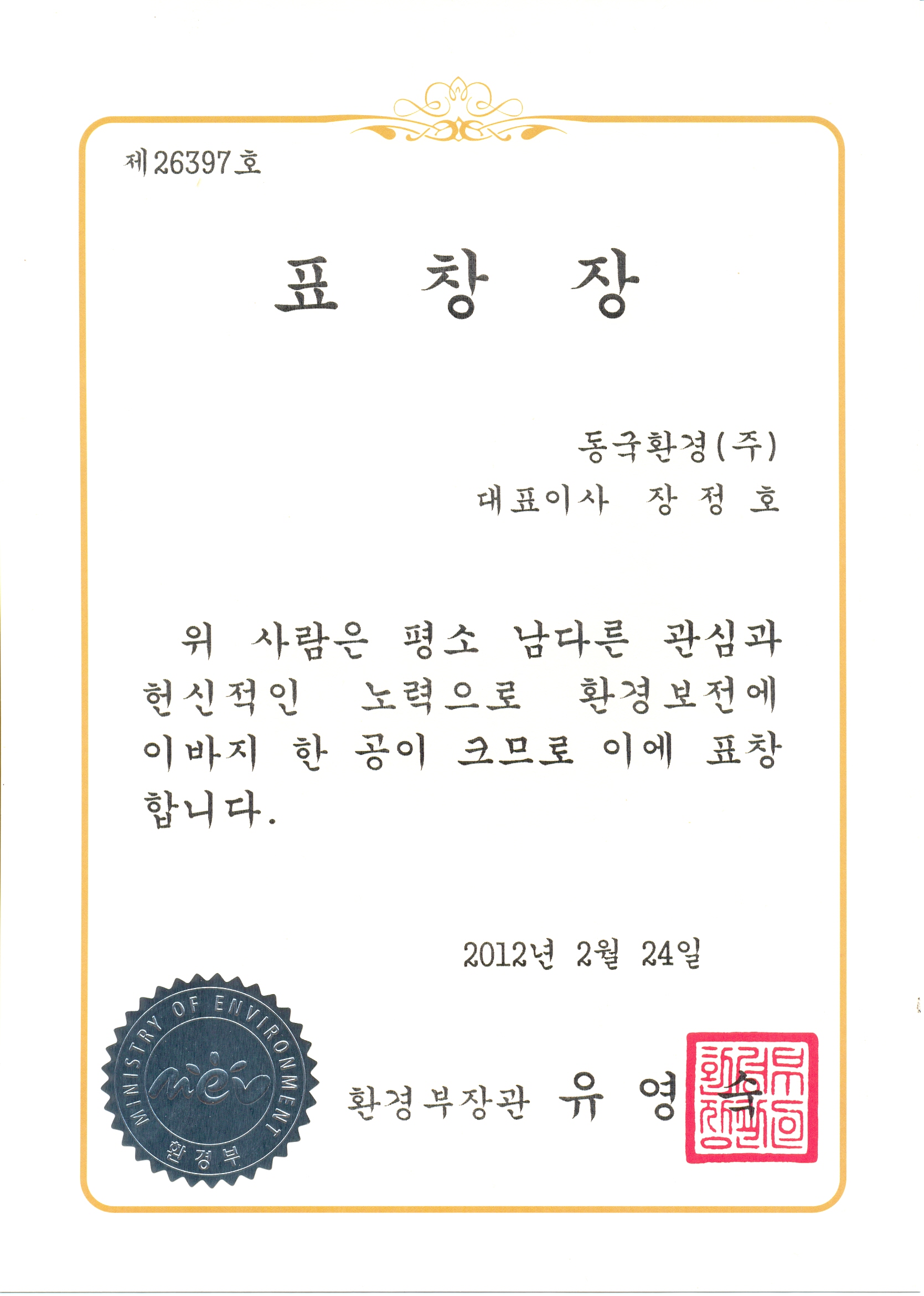 ÀåÁ¤È£ ´ëÇ¥ÀÌ»ç ȯ°æºÎÀå°ü»ó¼ö»ó