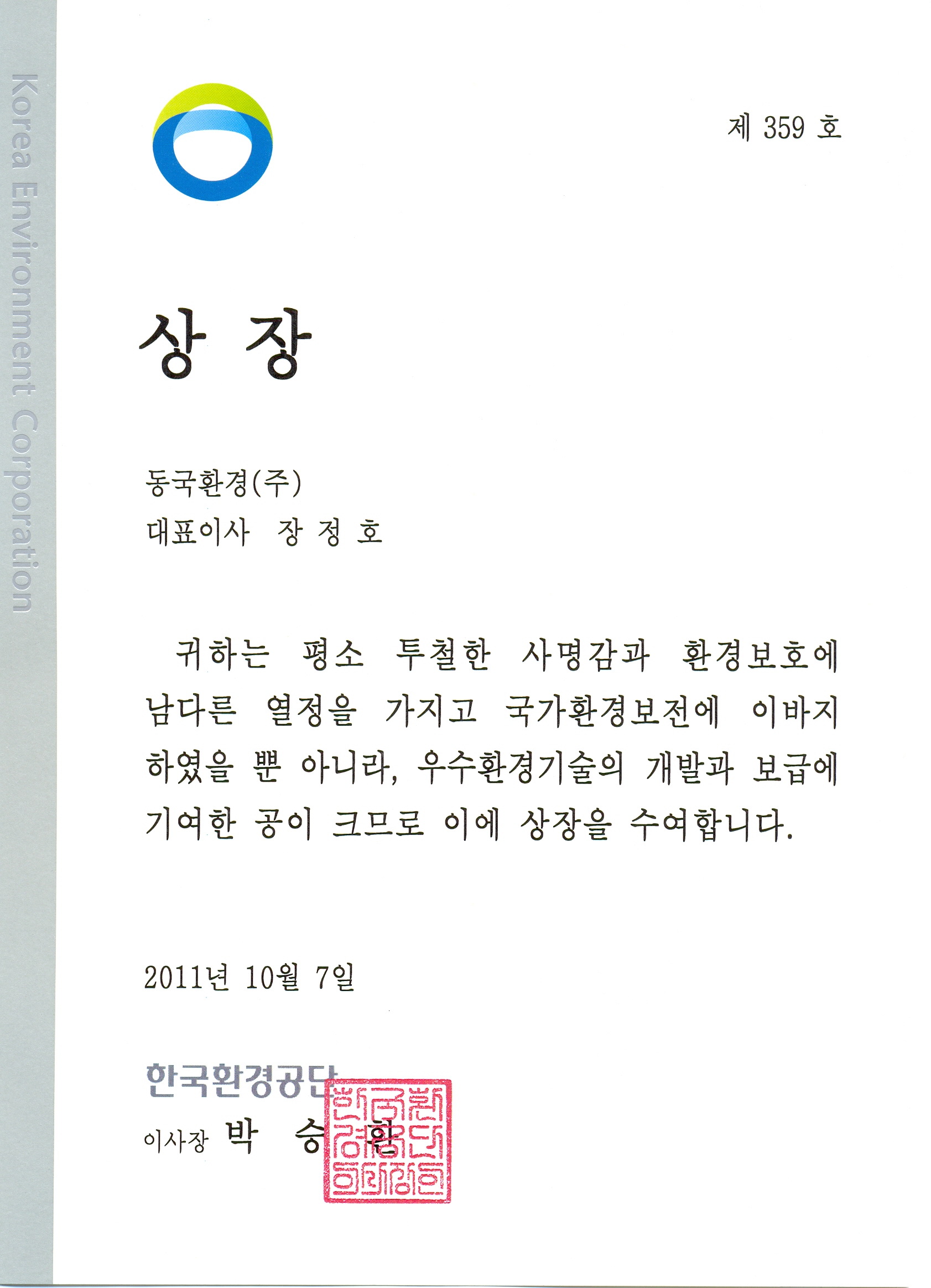 ÀåÁ¤È£ ´ëÇ¥ÀÌ»ç ¿ì¼öȯ°æ±â¼ú»ó ¼ö»ó (Çѱ¹È¯°æ°ø´Ü)